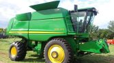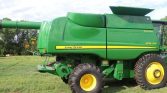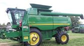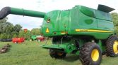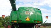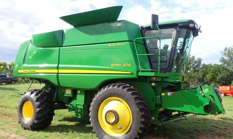 The 2008 John Deere 9770 STS combine has 3,033 engine hours and 2,218 separator hours. It is powered by a diesel engine with a hydrostatic transmission offering 3 forward and 3 reverse gears.